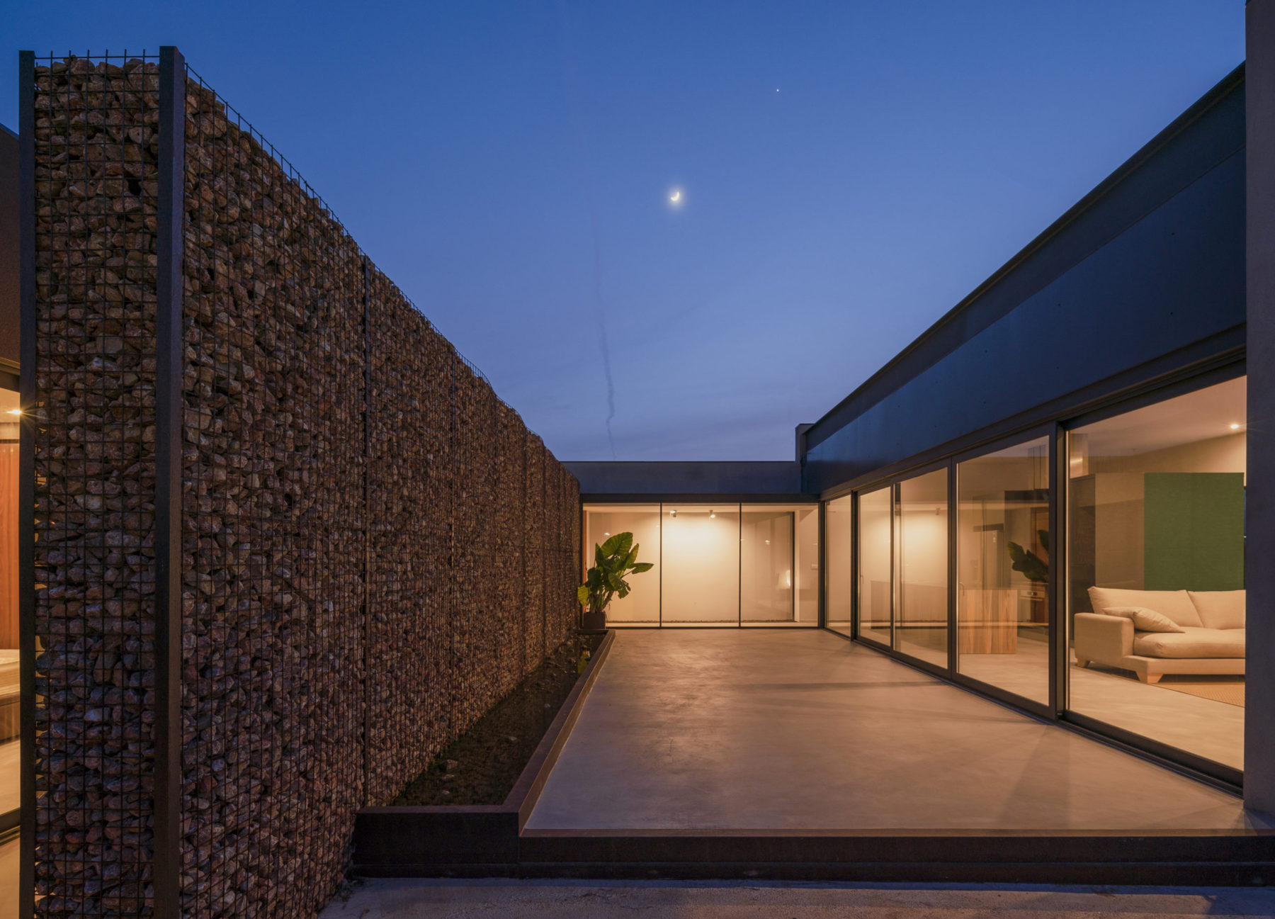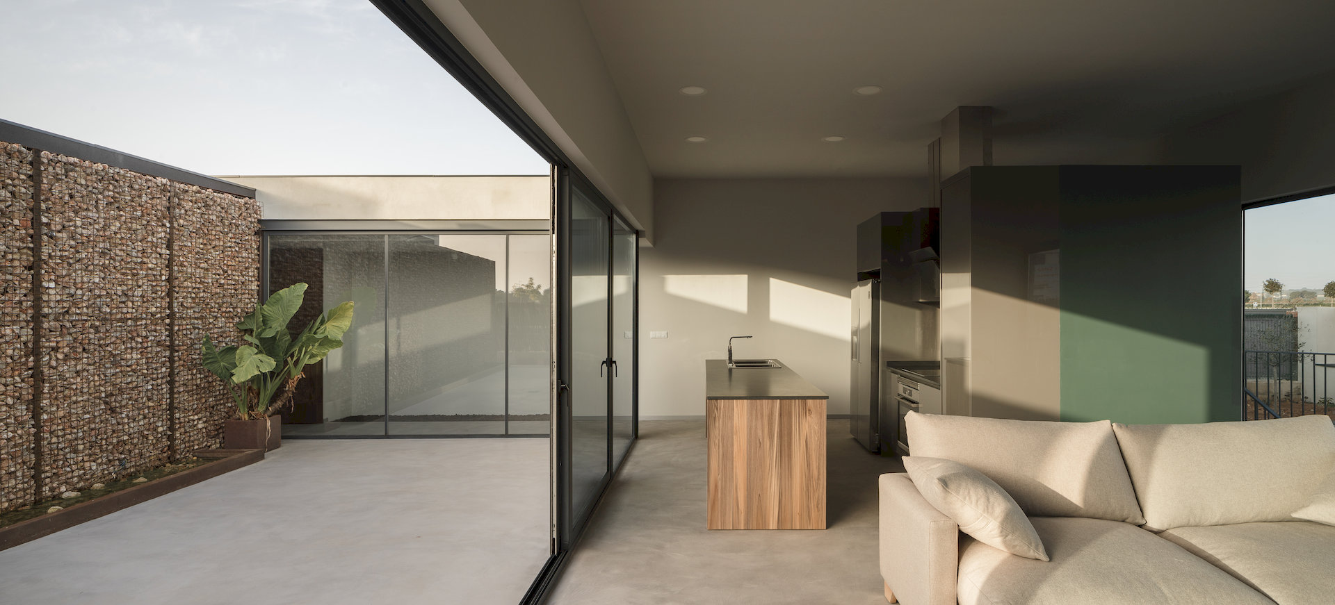 Una vivienda que se articula alrededor de dos patios, cálido y fresco, que ordenan los espacios, acompañan la vida y dialogan con el clima mediterráneo durante todo el año.