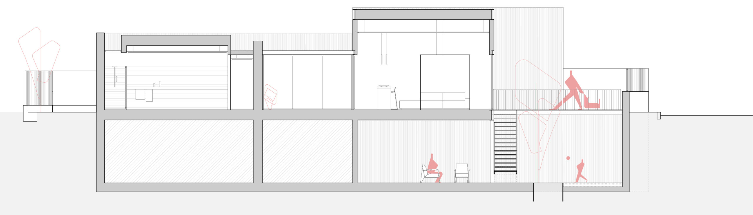Éste fue pues el punto de partida, además de dotar a la vivienda de una calidad espacial también en altura. Para ello, se decidió crear un patio inglés que convertía el sótano, además, en una estancia habitable y de calidad, ofreciendo un patio fresco vinculado a éste para los meses de verano.