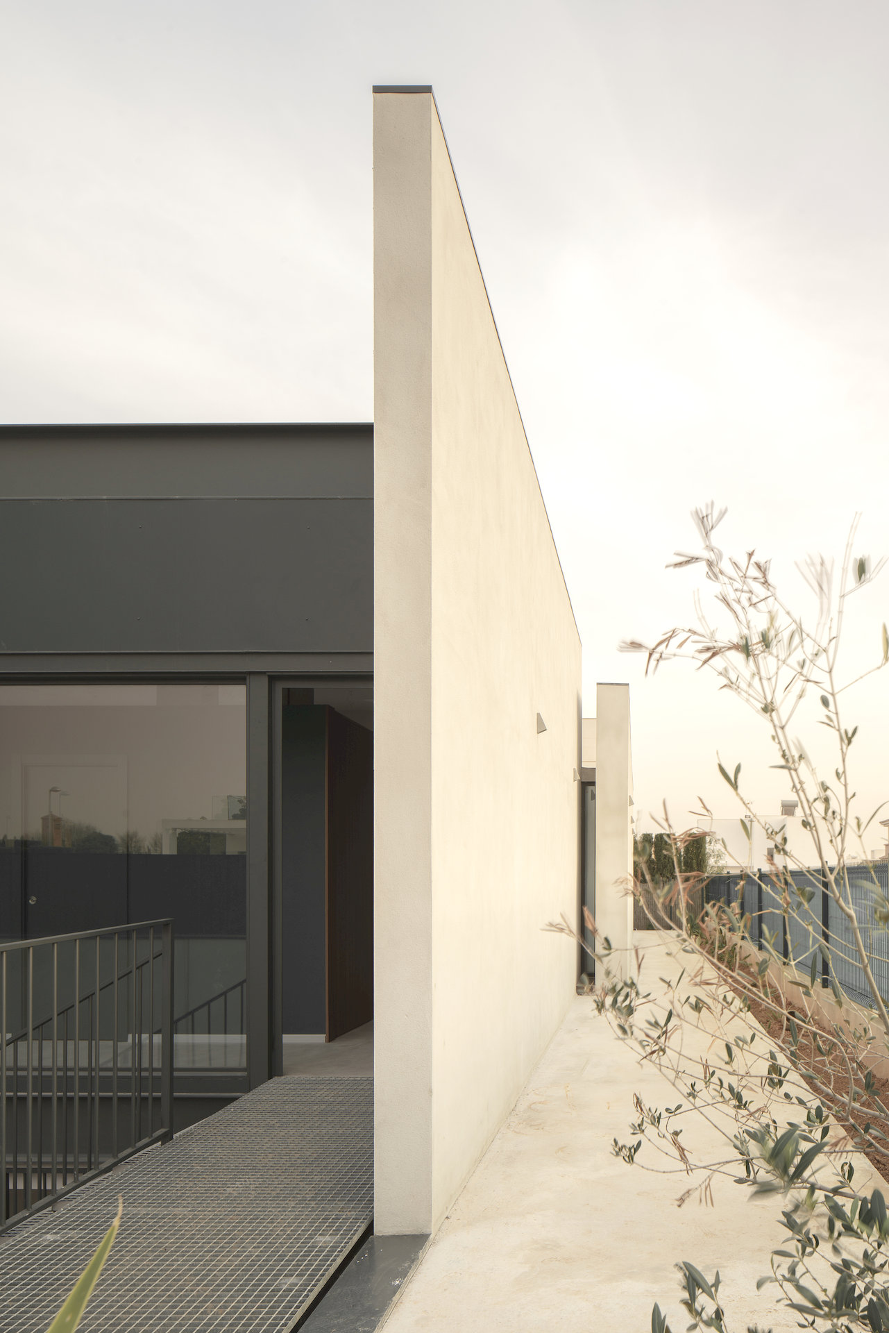 Al situarse el proyecto en una urbanización en desarrollo, integrado entre multitud de viviendas de nueva construcción sin coherencia de ningún tipo, resultaba complicado encontrar algún punto de partida para el proyecto, más allá de las preferencias de programa del cliente. Especificó su deseo de construir una vivienda en una sola planta con una separación evidente entre la zona de día y la zona de noche.